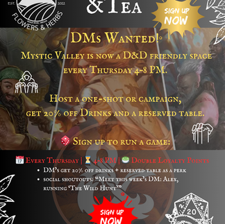 🎲✨ D&D & Tea Nights at Mystic Valley ✨